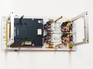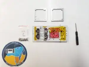 Для начала соберите плату питания: на первом этапе потребуются 4 болта M2x5 мм (по два с каждой стороны), 2 рамки и крестовая отвертка.
