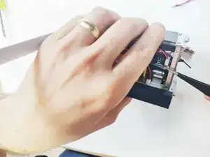 Пинцетом захватите конец кабеля и потяните его на себя.