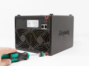 Выверните 2 винта на задней панели корпуса вверху и внизу (не тот, что над USB‑портом).