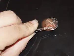 Держась пинцетом, медленно вставьте батарею в зажим. Как только она войдёт, держите батарею одним пальцем при вынимании пинцета.