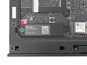 Используйте отвёртку Framework Desktop, чтобы затянуть фиксируемый винт Torx T5, закрепляющий SSD.