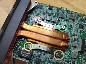 Снимите 3 винта, фиксирующие вентилятор CPU