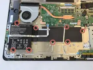 Снимите восемь винтов Phillips диаметром 3,5 мм, которые крепят аккумулятор.