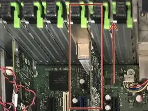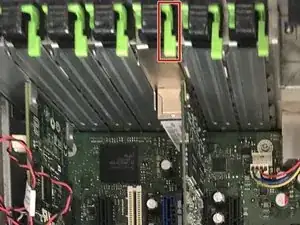 Нажмите на две зеленые вкладки и приподнимите вентилятор над ЦП