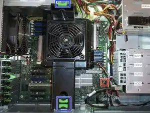 Будьте осторожны, кабель вентилятора короткий (красная стрелка)