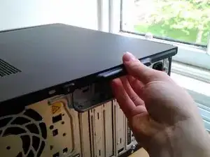 Затем боковую панель можно потянуть назад, используя предусмотренный язычок.