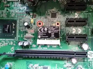 Затем, с помощью лопатки или аналогичного инструмента осторожно отсоедините антенный кабель от беспроводной карты, после чего она должна выглядеть как на втором изображении.