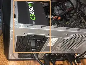 Отключите все подключенные кабели от блока питания, затем отключите кабель, подключенный к материнской плате внутри ПК.