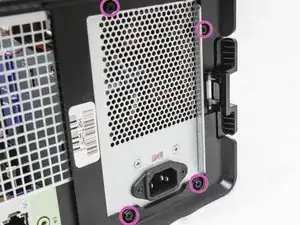 Замените четыре винта, чтобы закрепить блок питания в корпусе компьютера.