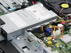 Отключите чёрно-жёлтый кабель блока питания от материнской платы.