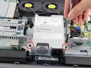 Используйте отвёртку Torx T15, чтобы выкрутить по два винта 8 мм с каждой стороны блока питания.