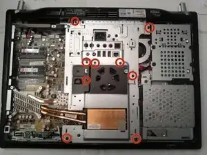 Задняя часть HP Touchsmart 300 после снятия крышки радиатора.