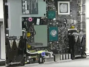Винт, удерживающий блок питания, находится под жестким диском, поэтому необходимо снять и жесткий диск, и узел радиатора