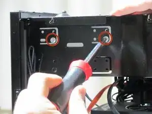 Внутри корпуса открутите винты, фиксирующие верхнюю панель к корпусу.