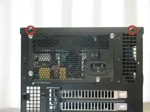 На задней панели компьютера открутите винты, соединяющие верхнюю панель с корпусом.