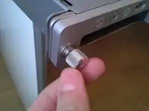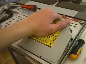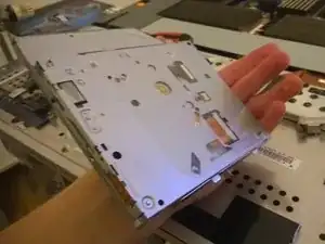 Сдвиньте маленькую металлическую деталь влево, чтобы освободить CD-привод.