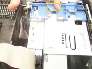 С помощью отвертки Phillips #1 открутите винты, соединяющие дисковод с отсеком для дисков. Уберите винты в место, где вы сможете использовать их позже.