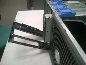 Чтобы извлечь несоединенный дисковод из отсека, сдвиньте дисковод к передней части компьютера.
