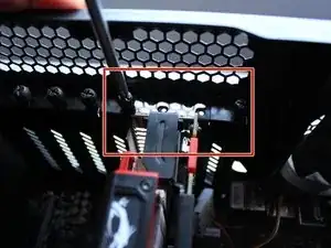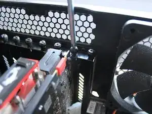 Используйте отвертку Phillips #0, чтобы удалить три винта размером 14 мм от GPU и материнской платы, чтобы мы смогли удалить GPU позже.