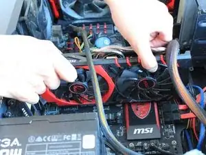 Отключите GPU от блока питания, так как нам нужно удалить все, что к нему подключено.