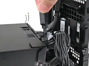 Протолкните кабель правой карты расширения через зазор между блоком питания и его воздуховодом.