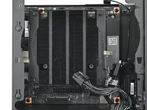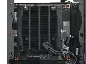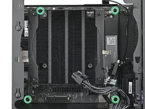 Используйте отвёртку Framework Desktop, чтобы выкрутить четыре винта Phillips длиной 27,3 мм, крепящих вентилятор CPU и воздуховод.