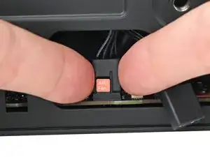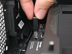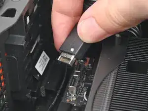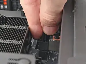 Пальцами поднимите разъём кабеля кнопки питания с девятиштырькового разъёма на материнской плате.
