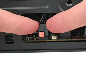 Установите разъём чёрного антенного кабеля на коаксиальный разъём левого модуля Wi-Fi.