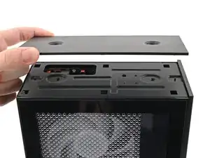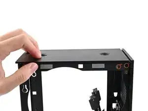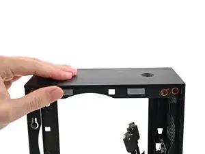 Сдвиньте верхнюю панель к задней части компьютера, чтобы освободить фиксаторы, удерживающие её на каркасе.
