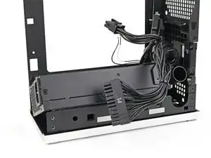 Извлеките блок питания из его посадочного места и положите его на левую сторону настольного компьютера.