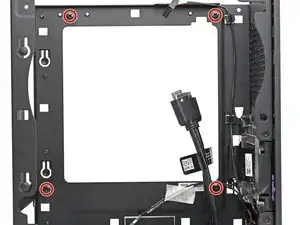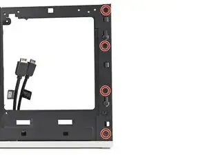 Если Вы снимали заднюю панель, воспользуйтесь отвёрткой Framework Desktop, чтобы установить шесть винтов длиной 4,0 мм, крепящих заднюю панель.