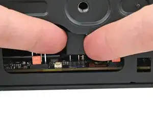 Удерживая верхнюю панель под небольшим углом вниз, сдвиньте её по верхней части корпуса (сзади наперёд), пока не почувствуете, что фиксаторы защёлкнулись.