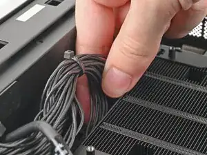 Если кабели проложены неправильно, слегка приподнимите вентилятор и пальцами переложите кабели по стороне радиатора.