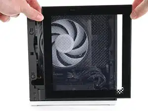 Наденьте левую панель на левый край корпуса и прижмите её, чтобы защёлкнулись фиксаторы.
