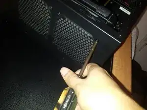 Снимите винты, удерживающие боковую панель, с задней части корпуса системного блока.