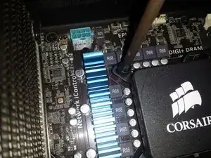 Отключите кабель, подсоединённый к кулеру, от материнской платы.