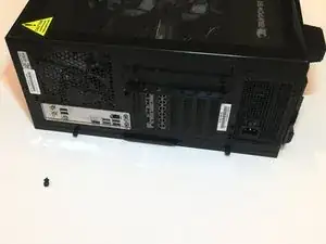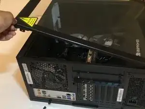 Положите настольный ПК на бок, чтобы стеклянная панель была направлена вверх.