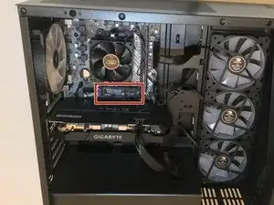 Найдите M.2 накопитель, который находится прямо над процессором.