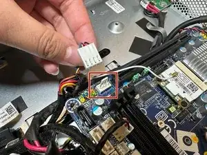 Отключите связанный кабельный разъём, идущий в материнскую плату.