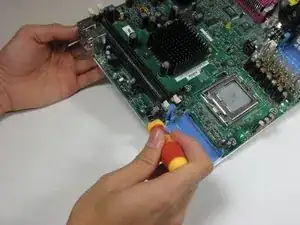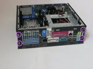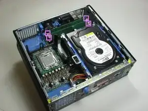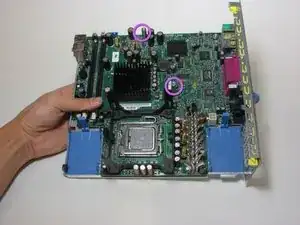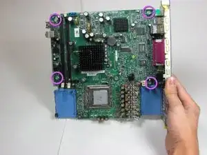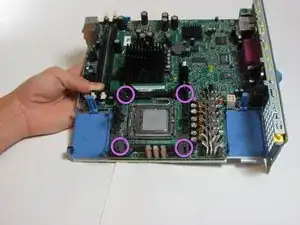 Удалите четыре винта, крепящие материнскую плату к задней панели корпуса.