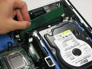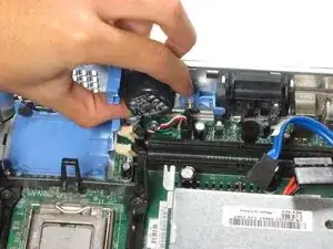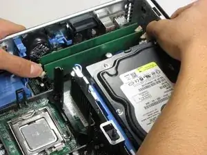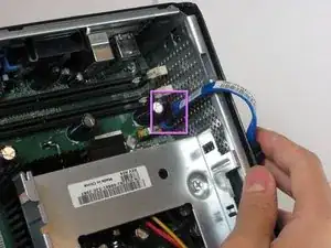 Отключите синий кабель, соединяющий жесткий диск с материнской платой.