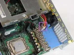Отключите питание, подключающее нижний вентилятор к материнской плате; его провода также черный, красный, зеленый и желтый.