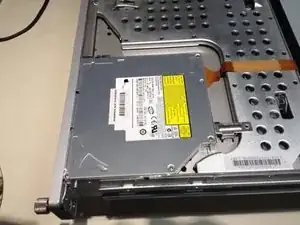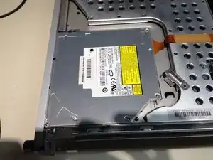 Сдвиньте фиксатор, чтобы освободить привод CD/DVD.