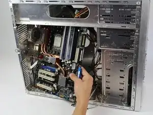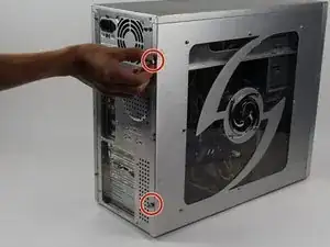 Затем удалите боковую панель корпуса компьютера, чтобы получить доступ внутрь.