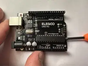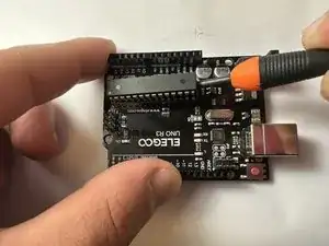 Микроконтроллер ATMega328P обрабатывает инструкции на языке C из Arduino IDE. Если он повреждён, код не может быть выполнен. К счастью, замена микроконтроллера — это простой и незатейливый процесс. Перед началом ремонта отключите плату Arduino от USB.