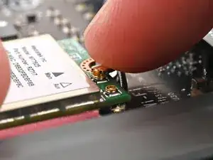 На модуле Wi-Fi находятся два хрупких коаксиальных разъёма. Будьте предельно внимательны при выполнении шага, чтобы не повредить их.
