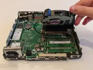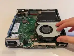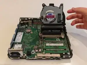 Осторожно приподнимите основной вентилятор, чтобы открыть доступ к модулям оперативной памяти.