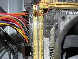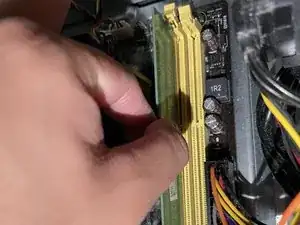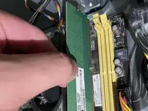 Выньте модуль ОЗУ, потянув его прямо наружу.