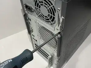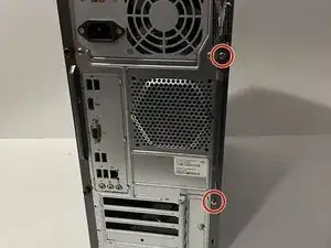Используйте крестовую отвертку Phillips #00, чтобы открутить два винта 3.5 мм на кромке боковой панели.