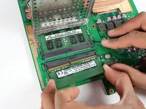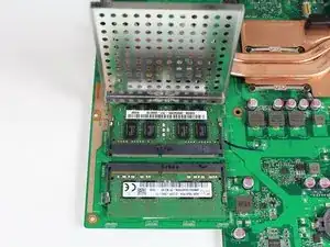 Снимите металлический щит, закрывающий оперативную память, потянув щит строго вверх.